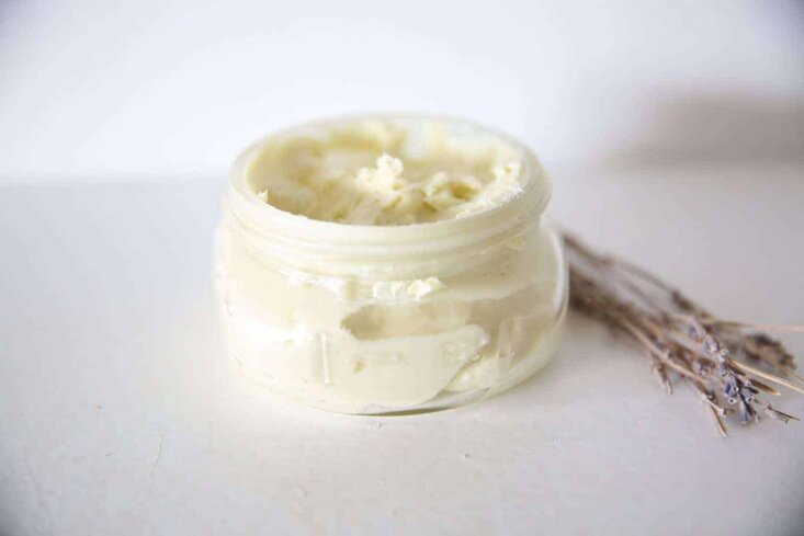 Use an electric hand mixer or immersion blender to whip/mix until the product starts to form into a butter-like consistency. Scoop into your jars.