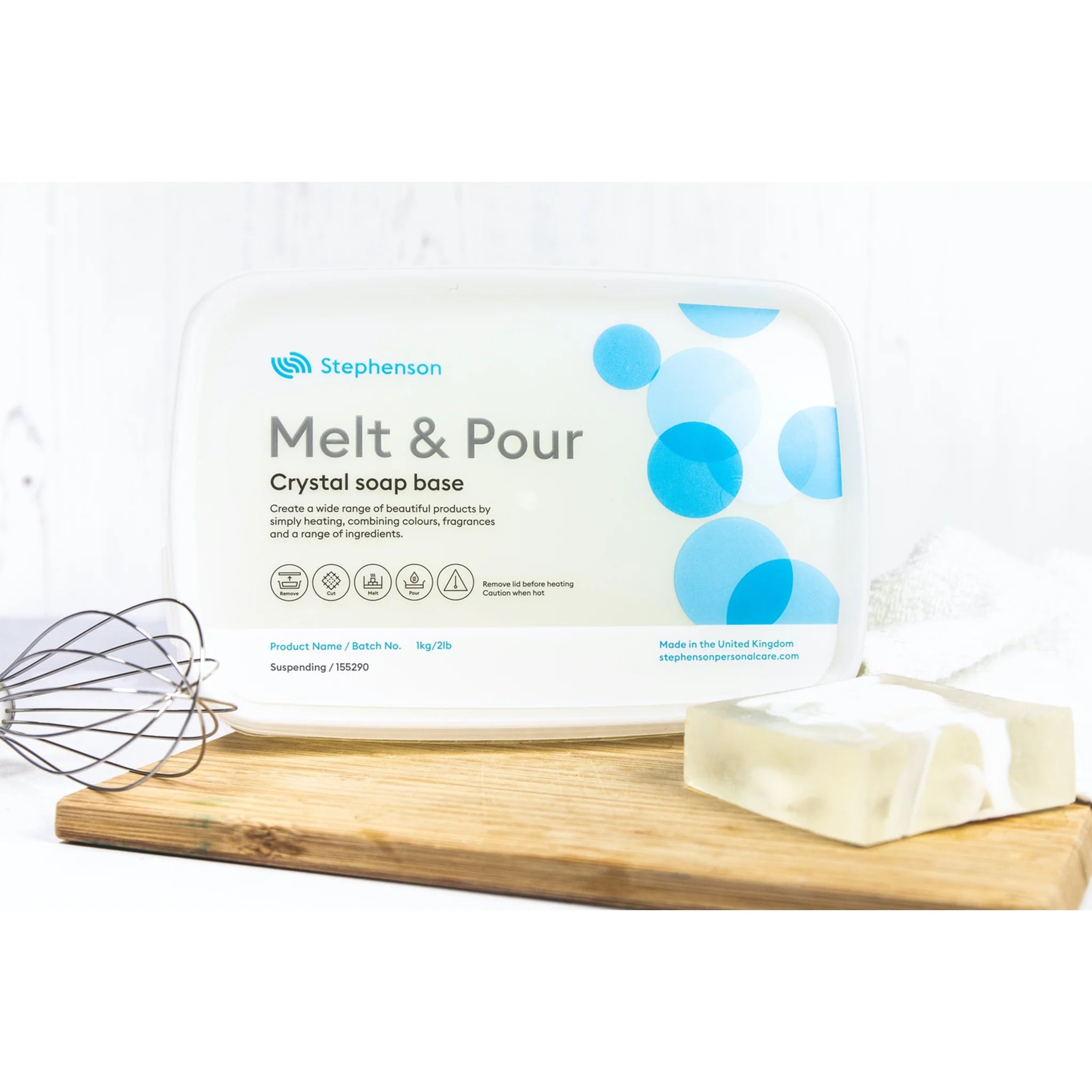 This Crystal Suspending melt and pour soap base by Stephenson's Personal Care is perfect for creating soap bars for making semi-transparent bars with suspended exfoliants. This base can also be used to create a multilayered swirl effect.